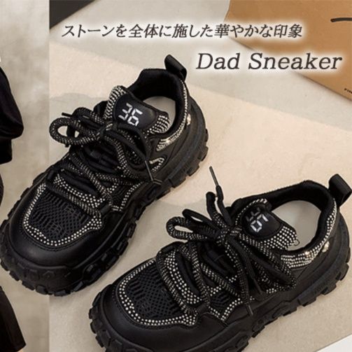 ・存在感は抜群のある厚底ソールでスタイルアップできちゃいます。 ・キラキラストーンを全体に施した華やかな印象。 ・大きめのフォルムながらクセのないデザインでコーディネートに取り入れやすいです。 ・厚みと弾力のある6cmアウトソールで疲れにくい。 ・耐摩耗性&滑り止めアウトソールで安心安全です。 ■サイズ(単位:約cm) 22.5cm(35)、23.0cm(36)、23.5cm(37)、24.0cm(38)、24.5cm(39)、25.0cm(40) ■素材 ポリエステル、合成皮革、合成底