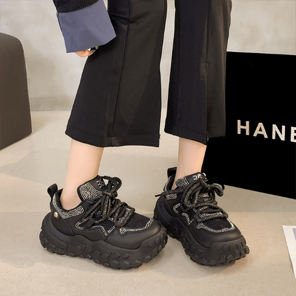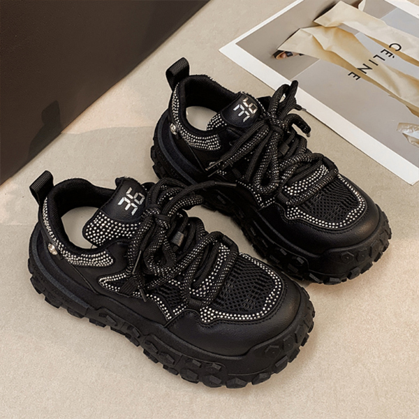 ストーンが施された華やかなメッシュ素材の厚底紐靴です。