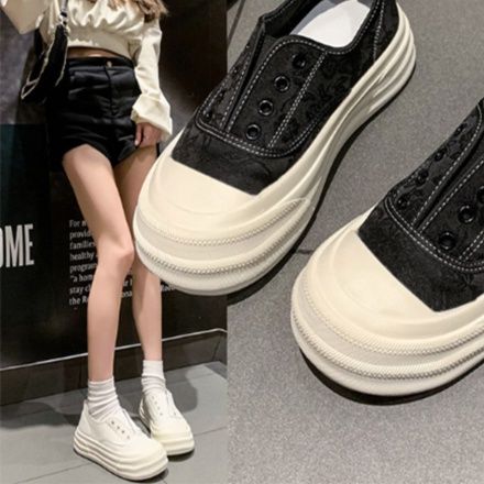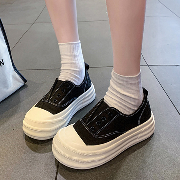 立体感のある厚底デザインで美脚効果抜群の黒靴スニーカー。